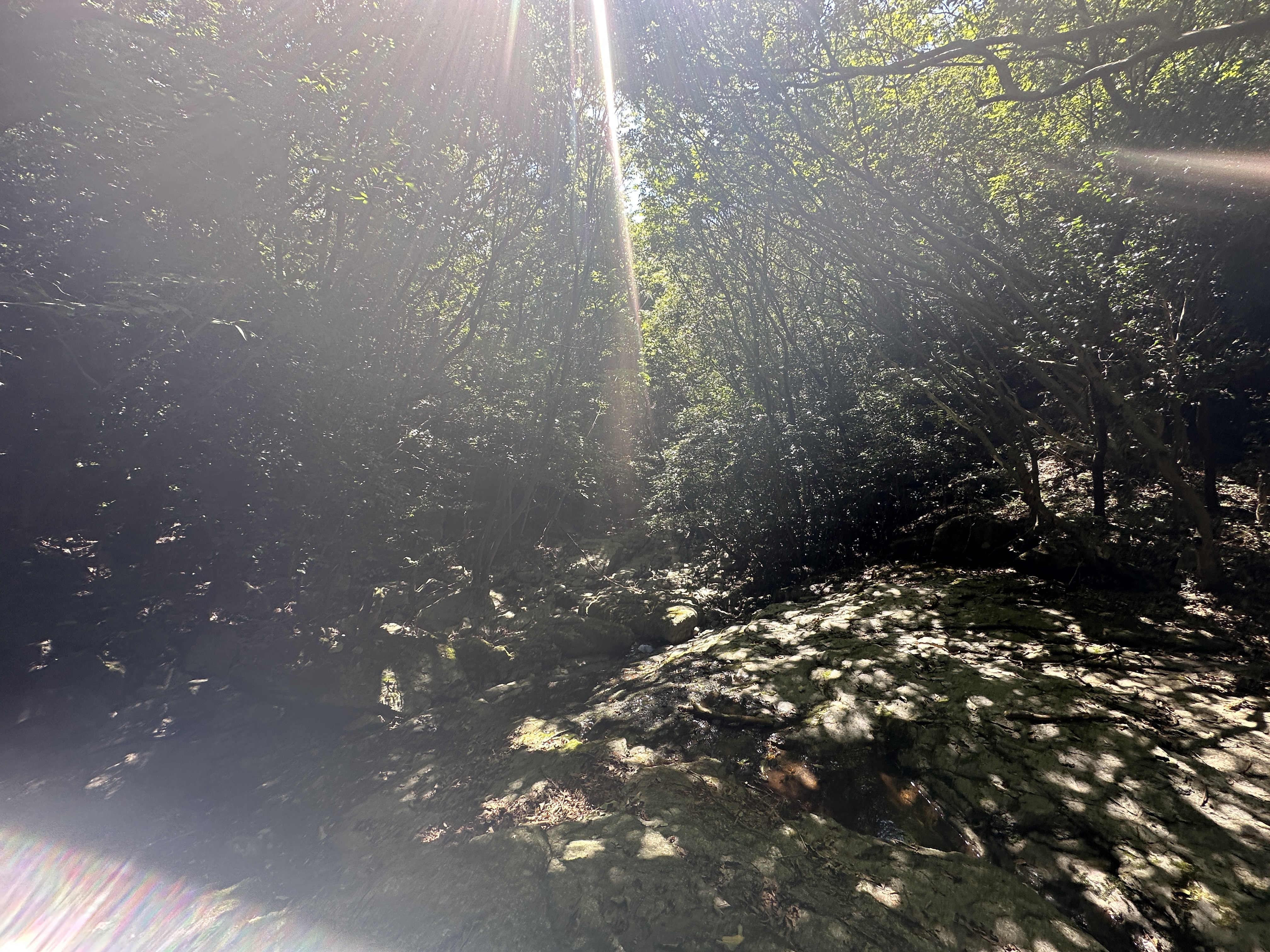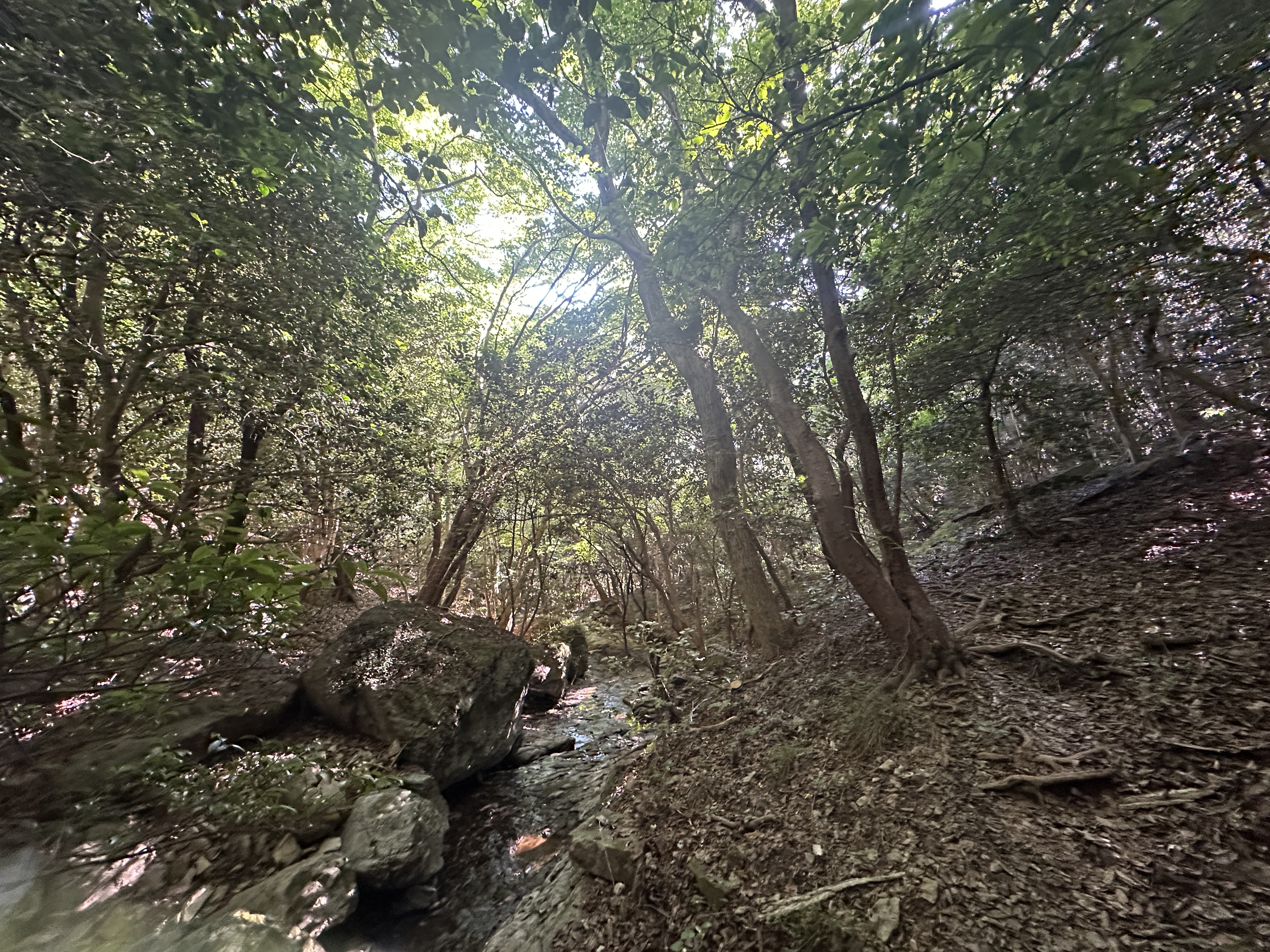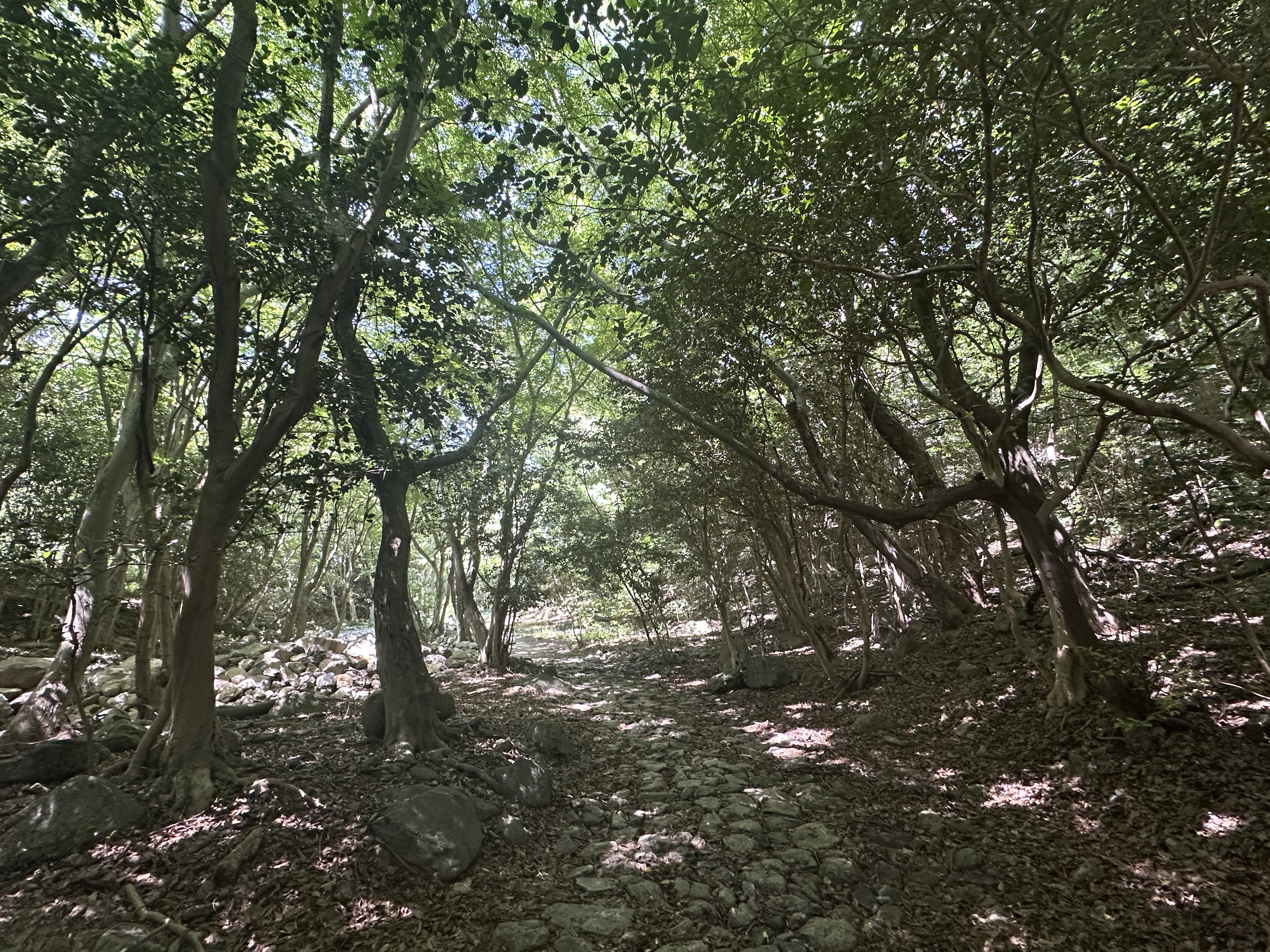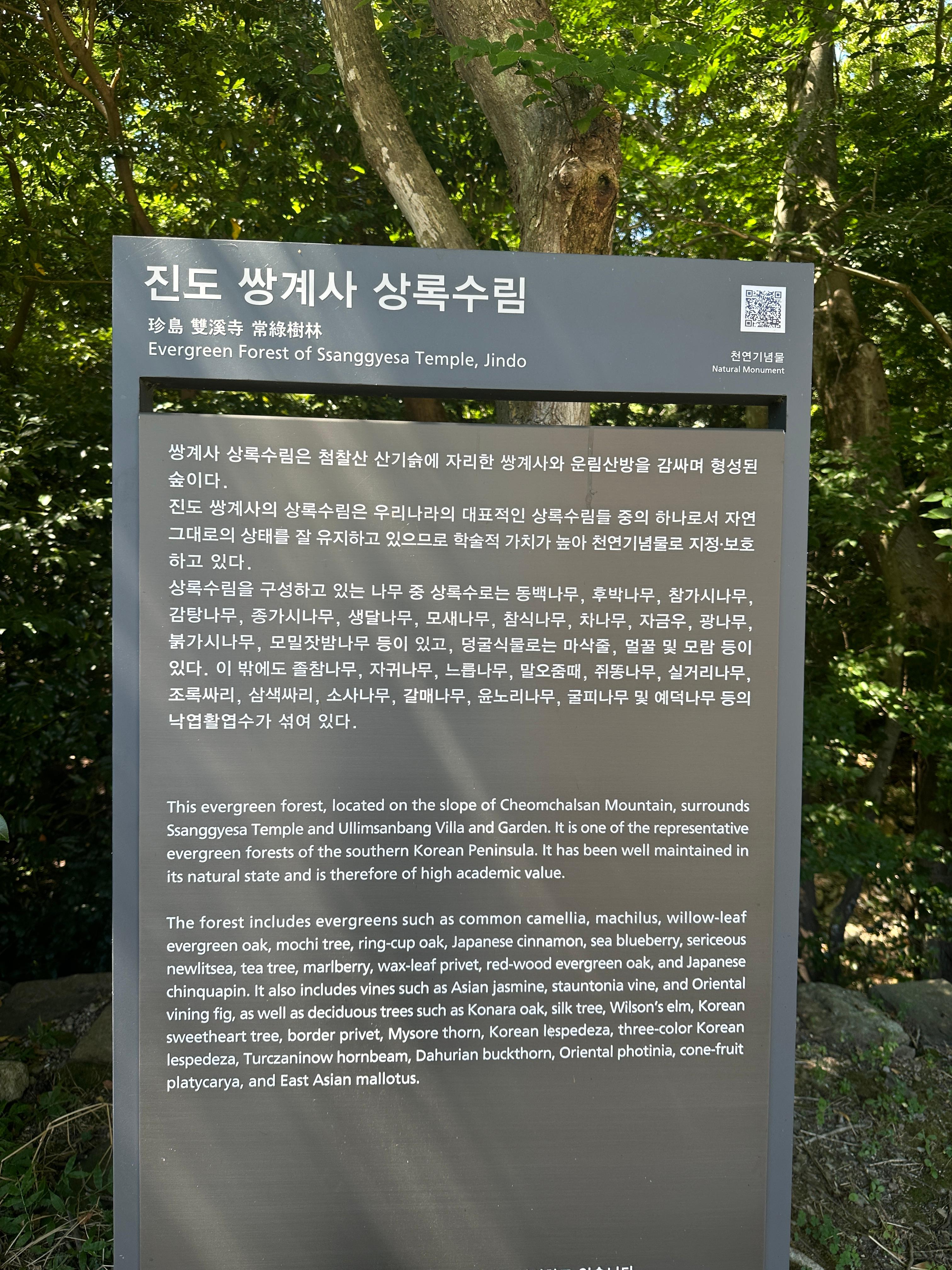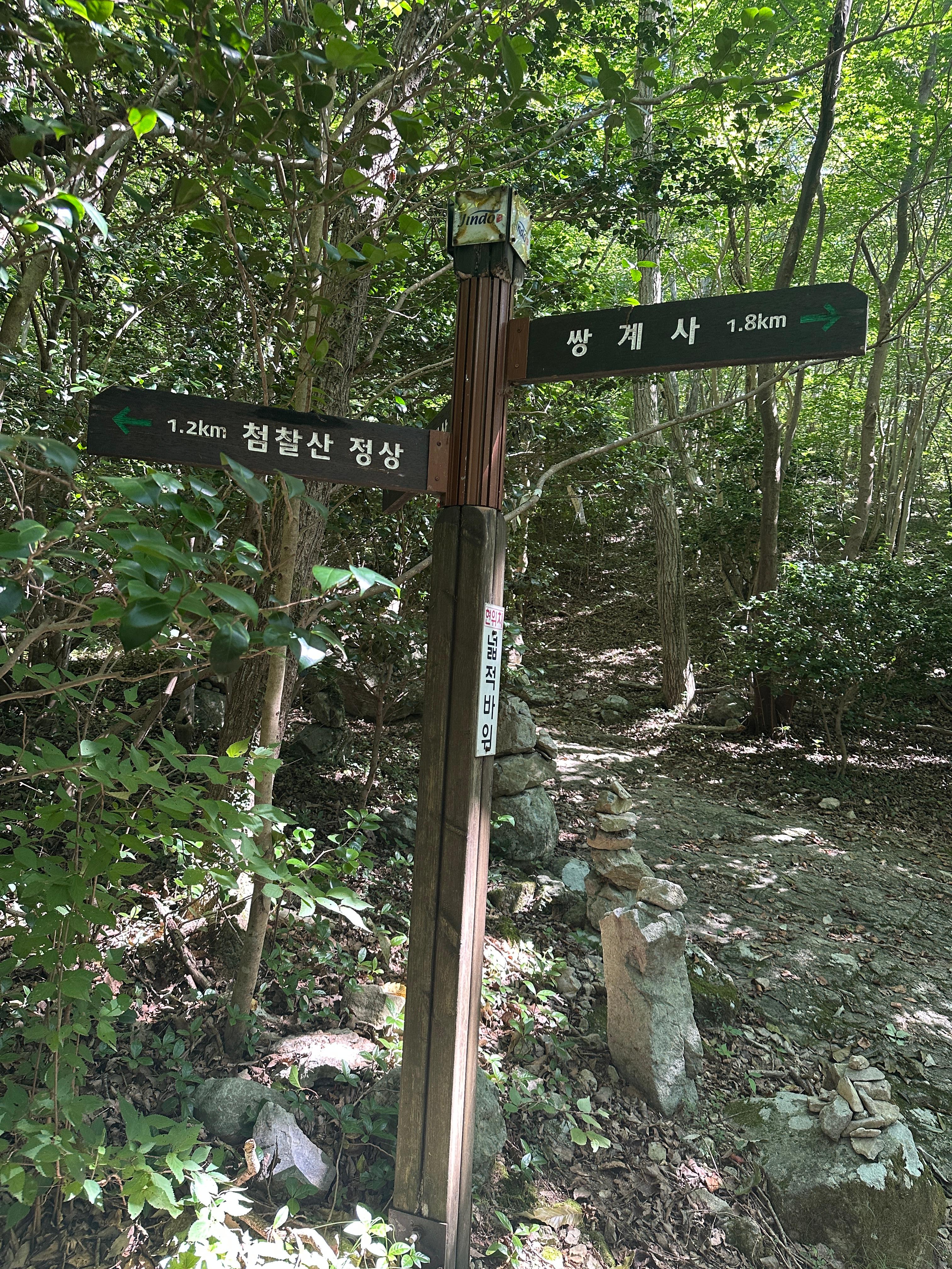 첨찰산 쌍계사 입구 옆에 첨찰산으로 가는 좁은 길이 있다. 길을 따라 들어가니 잘 자란 상록수림으로 인해 햇살이 비치지 않으니 어두컴컴하고 오늘 한낮 기온이 30도인데도 더운줄 모르겠다.