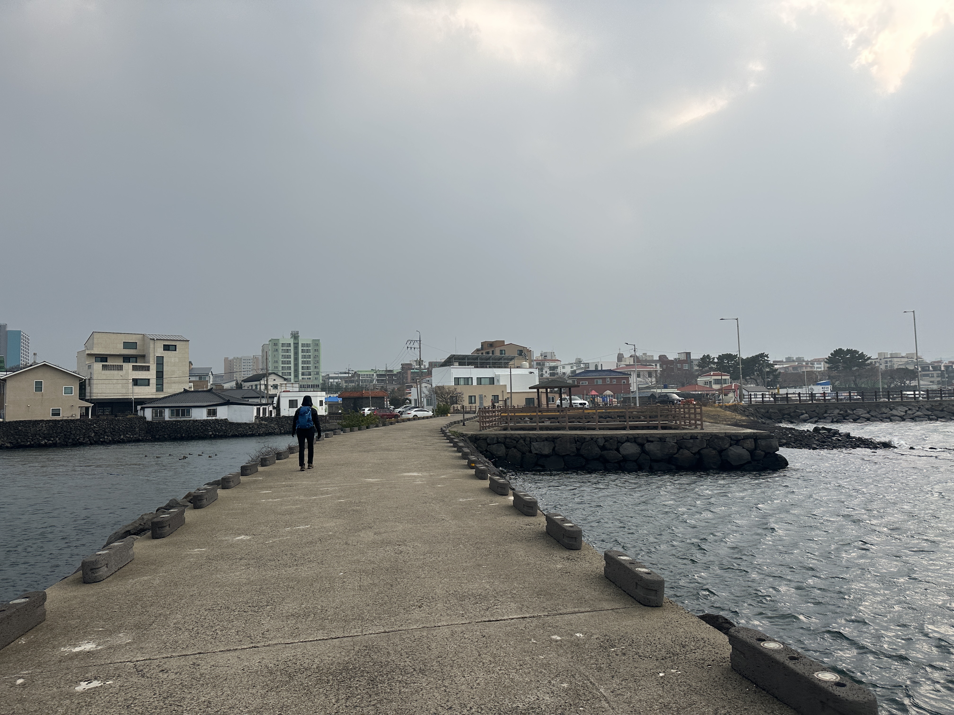 뜨끈한 칼국수를 먹으려고 삼양해수욕장으로 갔는데 아쉽게도 늘 가던 식당이 없어졌다. 파도가 넘어오는 해안길을 조심하며 지나 삼양감수탕탕을 조금 지나가니 국수집 '화리'가 있다. 뜨끈한 국물이 먹고 싶어 친구는 수육국밥을, 나는 성게미역국을 먹고나니 추웠던 몸이 풀린다.점심을 먹은 후 제주올레길을 따라 사라봉 방향으로 걷는데 바람이 점점 더 세게 분다. 화북포구로 가는 길이 전과달리 개발로 인해 많이 훼손되어 있어 아쉽다. 사라봉까지 걸으려고 했지만 날이 추워 화북포구까지 걷고 찻길로 나와 도보를 마쳤다.